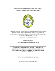 18 CAPÍTULO 2: ADMINISTRACIÓN ESTRATÉGICA 2.1. ADMINISTRACIÓN ESTRATÉGICA A continuación se darán una serie de definiciones provenientes de distintos autores acerca de la Administración Estratégica para poder brindar un contexto y una conclusión más adecuada y exacta: Según Stephen P. Robbins y Mary Coulter “La administración estratégica es el conjunto de decisiones y acciones administrativas que determinan el desempeño a largo plazo de la organización. Es una tarea importante de los gerentes y comprende todas las funciones administrativas básicas (Robbins Coulter, 2005, pág. 180)” Según Arthur A. Thompson, Jr. y A. J. Strickland “La administración estratégica es el proceso de creación de estrategias y de su puesta en práctica. Se refiere al proceso administrativo de crear una visión estratégica, establecer los objetivos y formular una estrategia, así como implantarla y ejecutarla. (Thompson Strickland, 2000)” Según Fred R. David “La administración estratégica se define como el arte y la ciencia de formular, implementar y evaluar decisiones multidisciplinarias que permiten que una empresa alcance sus objetivos. (DAVID, 2013, pág. 5) Para Hitt, Ireland y Hoskisson “La administración estratégica es el proceso compuesto por el conjunto completo de compromisos, decisiones y acciones que requiere una empresa para lograr una competitividad estratégica y obtener un rendimiento superior al promedio. En este proceso el primer paso de la empresa consiste en analizar tanto su entorno externo como el interno para determinar cuáles son sus recursos, capacidades y competencias centrales; es decir, las fuentes de sus “insumos estratégicos”. Con esta información define su Misión y Visión y formula su estrategia. Con el fin de implementar esta estrategia la empresa toma medidas para lograr la competitividad estratégica y obtener rendimientos superiores al promedio (HITT IRELAND HOSKISSON, 2007, pág. 6)”. Se tomará en cuenta la definición de Hitt, Ireland y Hoskisson debido a que es más exacta y hace mención a un “proceso” que integra las decisiones y acciones de la empresa previo a un análisis del entorno tanto externo como interno para lograr formular y posteriormente implementar una la estrategia, lo que significa que todas las acciones o actividades de la empresa tienen una relación directa sobre la estrategia.