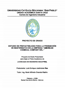 Proyecto de Grado Impacto Ambiental 204 2.4 Productos y Sub Productos Obtenidos Descripción Unidad Capacidad Instalada (unidades/día) Porcentaje Utilizado (%) Masterbatch kilogramos 2.120 57,2 2.5 Infraestructura de Servicios 2.5.1 Fuente de provisión de agua: Red pública ( x ) Pozo ( ) Otros……………. 2.5.2 Energía eléctrica: Potencia instalada de red pública ( 120 ) KVA Potencia instalada de generación propia ( ) 2.5.3 Descargas de efluentes industriales: Conexión al alcantarillado Si ( x ) No ( ) Lugar de descarga de efluentes ( lagunas de tratamiento de SAGUAPAC ) 2.5.4 Conexión de gas natural: Si ( ) No ( x ) 2.5.5 Servicios de residuos sólidos: Si ( x ) No ( ) Lugar de disposición de residuos ( vertedero municipal a través del Operador Privado ) 2.6 Datos del Personal Empleado Número de empleados de la unidad industrial: ( 5 ) 2.7 Datos de Superficie Superficie ocupada por las instalaciones: ( ≅ 4.000 ) m 2 Superficie total del predio: ( ≅ 10.000 ) m 2 2.8 Anexos 2.9 Declaración Jurada Después de llenado el formulario del Registro Ambiental Industrial, éste debe ser devuelto a la IAGM para su respectivo procesamiento en esta instancia ambiental, la cual en un plazo de cinco días debe otorgar la categoría ambiental de la industria. 10.2.3.2 Clasificación y Categorización La clasificación y categorización de la industria se realiza sobre la base de la información proporcionada por el representante legal a través del formulario y se fundamenta en la Clasificación Industrial por Registro de Contaminación (CIRC). La CIRC está basada en información sobre la valoración de riesgo ambiental de los distintos rubros de industrias, en función del aporte contaminante a los diferentes factores y manejo de sustancias peligrosas, como ser las emisiones a la atmósfera, los efluentes al medio hídrico, tóxicos metálicos y tóxicos en el aire, agua y suelo.