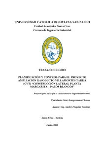 UNIVERSIDAD CATOLICA BOLIVIANA “SAN PABLO” MARCO TEORICO KURT JUNGERMANN CHAVEZ - 41 - Concluido este periodo se procede a estabilizar a una presión de 85% por un lapso de 20 horas, esta etapa se conoce como prueba de estanqueidad. Es importante que durante este periodo la presión este siempre por encima de la presión mínima de prueba, por lo que se recomienda sobrepasarse en 50 psi de este valor. En caso que existe una variación de temperatura y la presión de prueba corra riesgo de descender por debajo de la presión de prueba podrá ser despresurizada a una velocidad de aproximadamente 50 psi/minuto hasta llegar nuevamente a la presión de prueba. 2.7.2.9 Vaciado y Secado de la línea Para efectuar el vaciado de la línea, será necesario previamente contar con la aceptación del lugar de descarga por parte de los propietarios, además del análisis ocular del agua para demostrar que está en condiciones de ser vertida a campo abierto, ya que al tratarse de una línea nueva, ésta no estará contaminada con hidrocarburos, para ello la muestra podrá ser tomada antes de la presurización una vez llenado el tramo. Para el vaciado se utilizará si es necesario difusores de energía y evitar de esta manera erosiones del terreno circundante, para ello se utiliza el chancho de poliuretano depositado previamente para el vaciado, el mismo que será impulsado mediante aire a presión por la válvula colocada en el cabezal de prueba, teniendo para ello a favor la presión de paquetizado dejada una vez despresurizada la línea al concluirse la prueba.