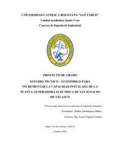 Universidad Católica Boliviana “San Pablo” Análisis técnico Andrés Domínguez Böker 122 Se emplea el software de simulación de operación de la planta desarrollado en VBA (Visual Basic for aplications) desarrollado en Microsoft Visual Studio denominado como “Gerenciador de simulación - operación motores en los sistemas” (Gerenciador de simulación - operación motores en los sistemas, 2018) (Ver Anexo confidencial número 16 de CRE R.L.). 6.4 Horas de operación El software “Gerenciador de simulación - operación motores en los sistemas” (Gerenciador de simulación - operación motores en los sistemas, 2018) (Ver Anexo confidencial número 16 de CRE R.L.) simula los resultados de las horas de operación de la planta de San Ignacio obteniendo los cuadros 6.5 y 6.6 para ambas alternativas. Cuadro 6.5 Horas de operación para alternativa “A” Año G4 G3 G1 G2 G5 G7 G6 G8 G9 G10 D3412 C32 D3516B D3516B D3516B D3516B D3516B D3516B D3516B D3516B 2018 5,00 15,00 23,75 24,00 2019 1,50 6,75 16,00 24,00 24,00 2020 2,75 9,00 16,75 24,00 24,00 2021 3,50 10,00 16,75 24,00 24,00 2022 4,00 11,75 17,25 24,00 24,00 2023 1,00 5,00 14,25 18,25 24,00 24,00 2024 2,25 6,50 14,50 18,75 24,00 24,00 2025 3,25 7,50 15,50 19,25 24,00 24,00 2026 3,75 9,00 15,75 20,50 24,00 24,00 2027 1,00 4,00 10,25 16,00 21,75 24,00 24,00 2028 2,25 5,00 11,75 16,50 22,50 24,00 24,00 2029 3,00 6,25 13,25 16,75 23,25 24,00 24,00 2030 3,75 7,50 14,25 17,00 23,50 24,00 24,00 2031 1,00 4,00 8,25 14,50 17,00 23,75 24,00 24,00 2032 2,25 4,00 10,00 15,50 17,25 24,00 24,00 24,00 Fuente: Elaboración con datos del cuadro 6.3 y del software “Gerenciador”.